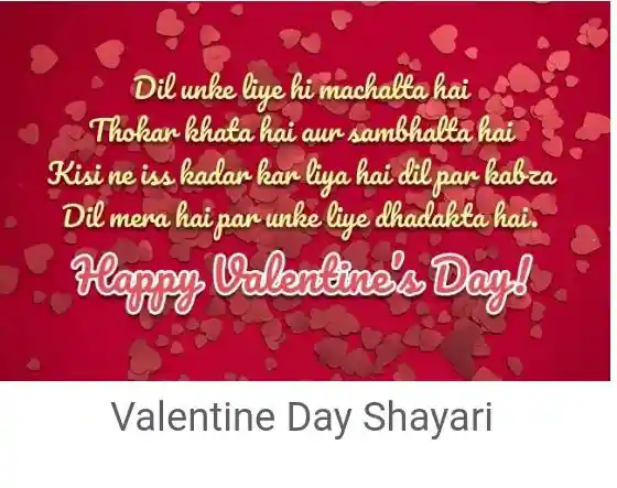 Dil unke liye hi machalata hai thokar khata hai aur sambhalata hai, Kisi ne iss kadar kar liya hai dil par kabza Dil mera hai llakin unke liye dhadkata hai ... Happy Valentine's Day !!!