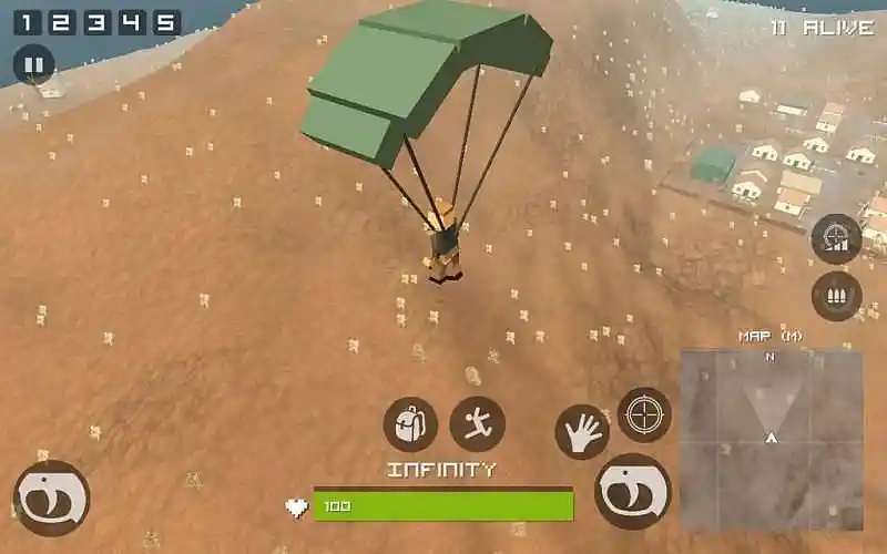 इस गेम में पिक्सेल माईनक्राफ्ट की तरह कैरेक्टर्स मौजूद है, जिसमें फर्स्ट पर्सन और थर्ड पर्सन मोड का विकल्प भी मौजूद है। साथ ही यह बेहतर गन्स जैसे snipers,AK,pixel gun, और pistols देता है। इस गेम का साइज 34MB का है .