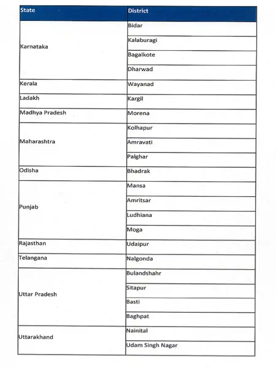 The list below is of the districts where clusters have been formed to deal with the corona virus