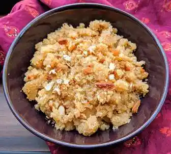 A quick, easy and delicious halwa often cooked in Indian homes. Sooji Halwa is often made for an auspicious occasion or a pooja. It could also be a festive occasion like Diwali, Ganesh Chaturthi or a religious ceremony at your home. Since this is such an easy and quick recipe, you don’t really need an occasion to relish it. You can have it whenever you feel like having something sweet.