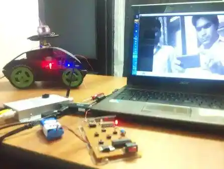 It uses RF frequency to transmit controlling signal from remote control to the ROBOT.